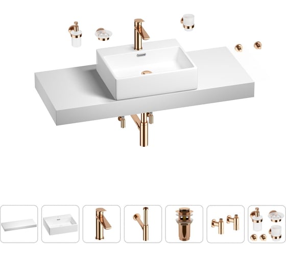Раковина Wellsee 50 см со столешницей 120 см Graceful Pro 201012554 в наборе 10 в 1