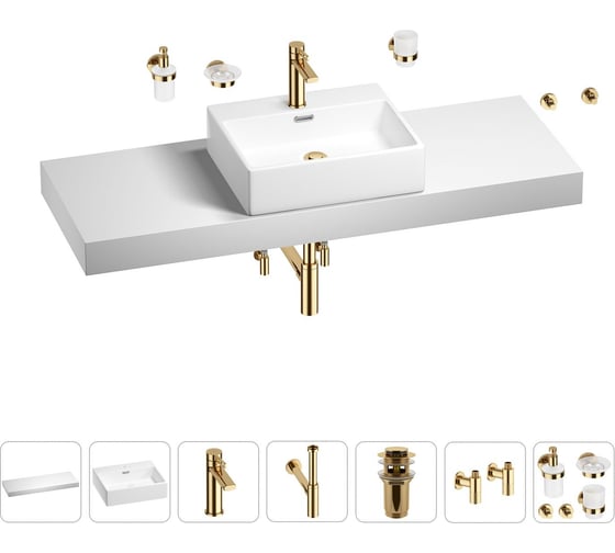 Раковина Wellsee 50 см со столешницей 140 см Graceful Pro 201012618 в наборе 10 в 1