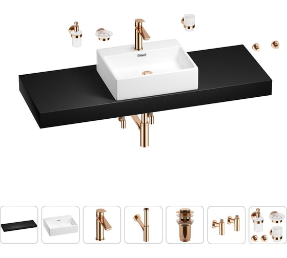 Раковина Wellsee 50 см со столешницей 140 см Graceful Pro 201012624 в наборе 10 в 1