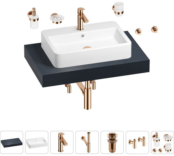 Раковина Wellsee 60 см со столешницей 80 см Halcyon 201011924 в наборе 10 в 1