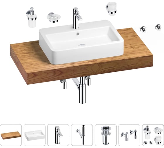 Раковина Wellsee 60 см со столешницей 100 см Halcyon в наборе 10 в 1 201011996