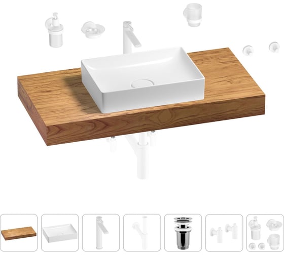 Раковина Wellsee 50 см со столешницей 100 см Pure BY 201011240 в наборе 10 в 1