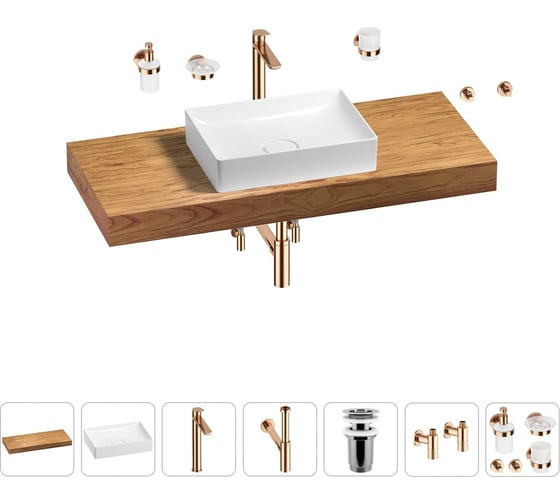 Раковина Wellsee 50 см со столешницей 120 см Pure BY 201011354 в наборе 10 в 1