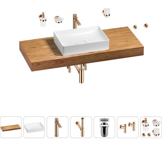 Раковина Wellsee 50 см со столешницей 120 см Pure BY 201011359 в наборе 10 в 1