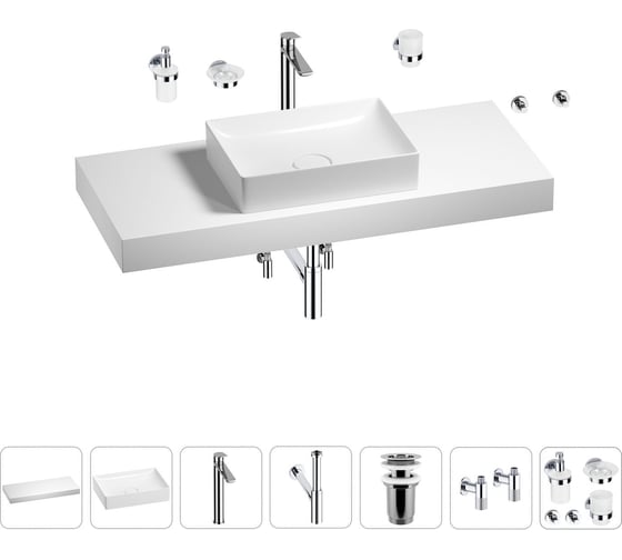 Раковина Wellsee 50 см со столешницей 120 см Pure BY 201011391 в наборе 10 в 1