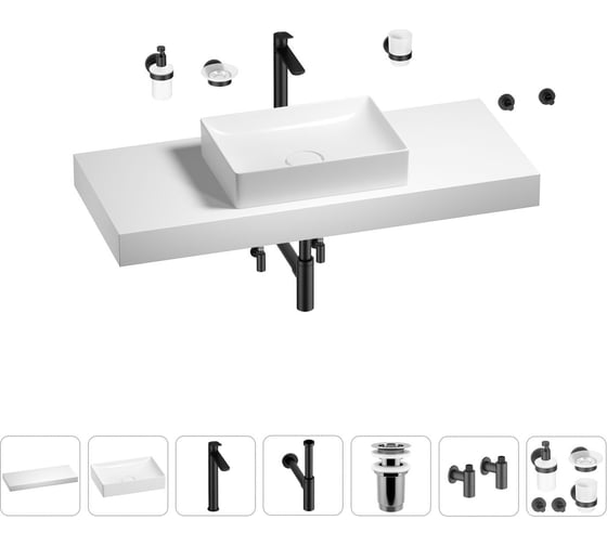 Раковина Wellsee 50 см со столешницей 120 см Pure BY 201011392 в наборе 10 в 1
