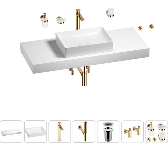Раковина Wellsee 50 см со столешницей 120 см Pure BY 201011393 в наборе 10 в 1
