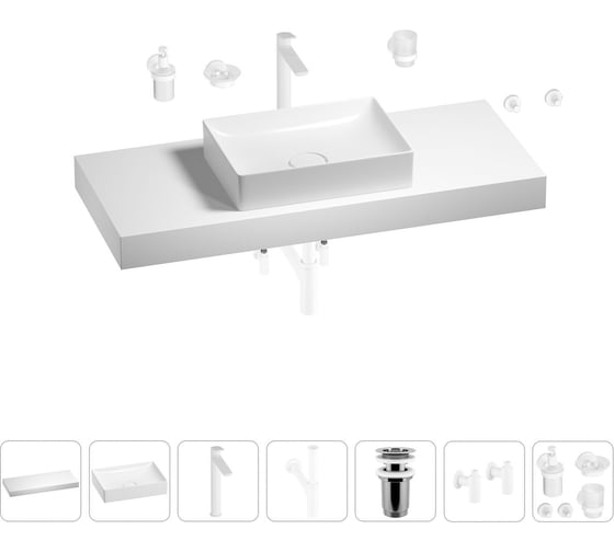 Раковина Wellsee 50 см со столешницей 120 см Pure BY 201011395 в наборе 10 в 1
