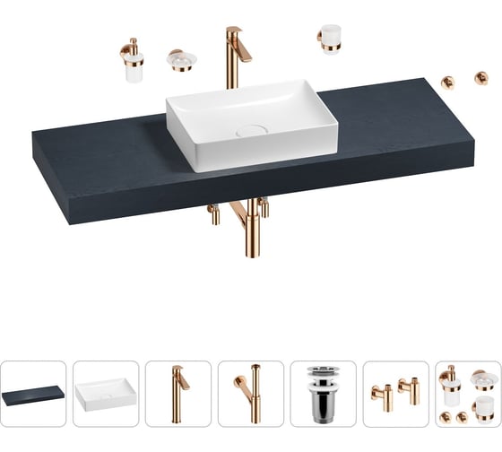 Раковина Wellsee 50 см со столешницей 140 см Pure BY 201011454 в наборе 10 в 1