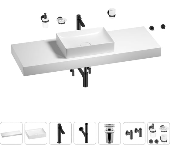 Раковина Wellsee 50 см со столешницей 140 см Pure BY 201011517 в наборе 10 в 1