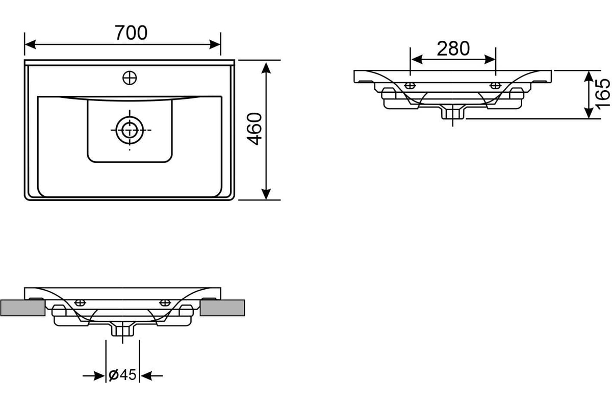 Форма раковины:прямоугольная