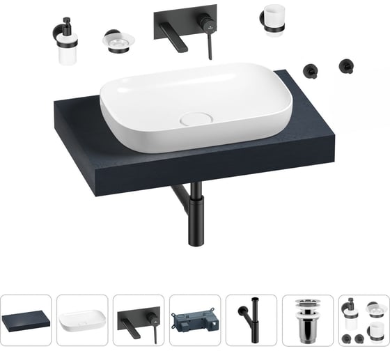 Раковина Wellsee 60 см со столешницей 80 см Croquis 201007927 в наборе 9 в 1