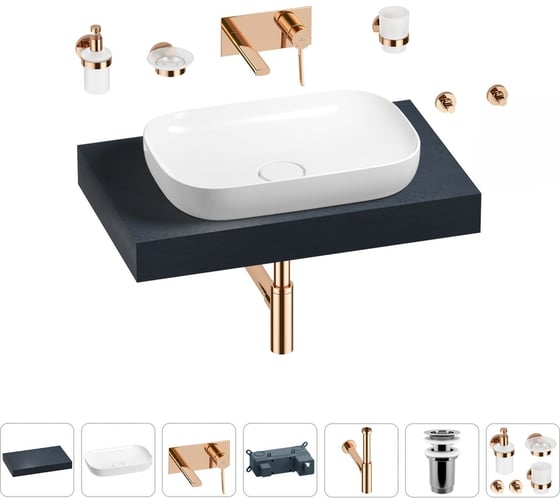 Раковина Wellsee 60 см со столешницей 80 см Croquis 201007929 в наборе 9 в 1