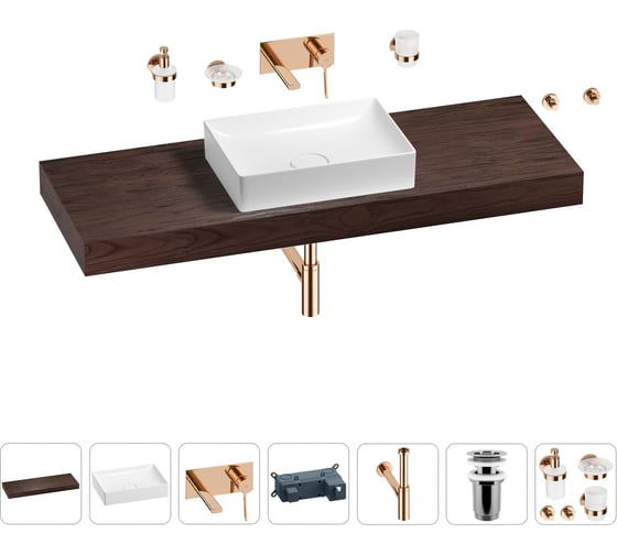 - 1 x cтолешница для раковины, арт. 162016000 (размер 140*50 см, цвет темный дуб Гварнери)