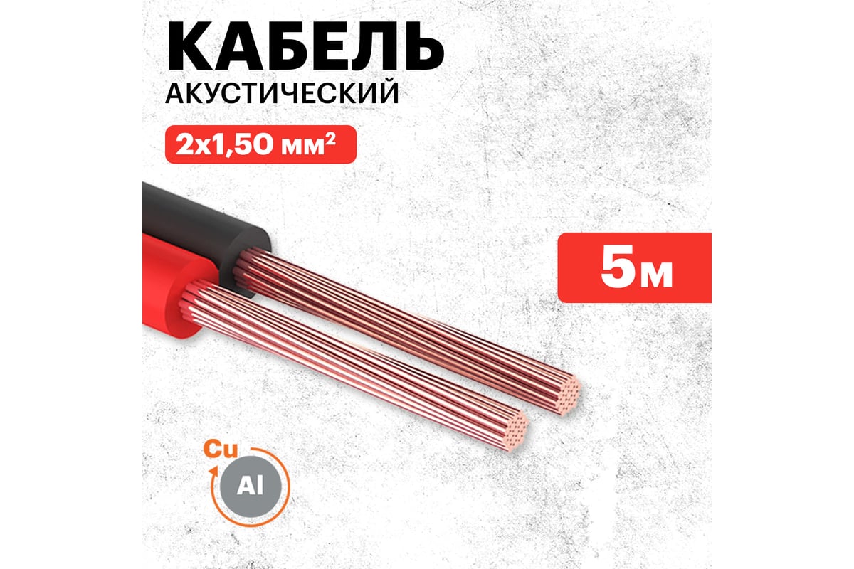 Акустический кабель REXANT 2х1,50 мм2 красно-черный м. бухта 5 м 01-6106-3-05