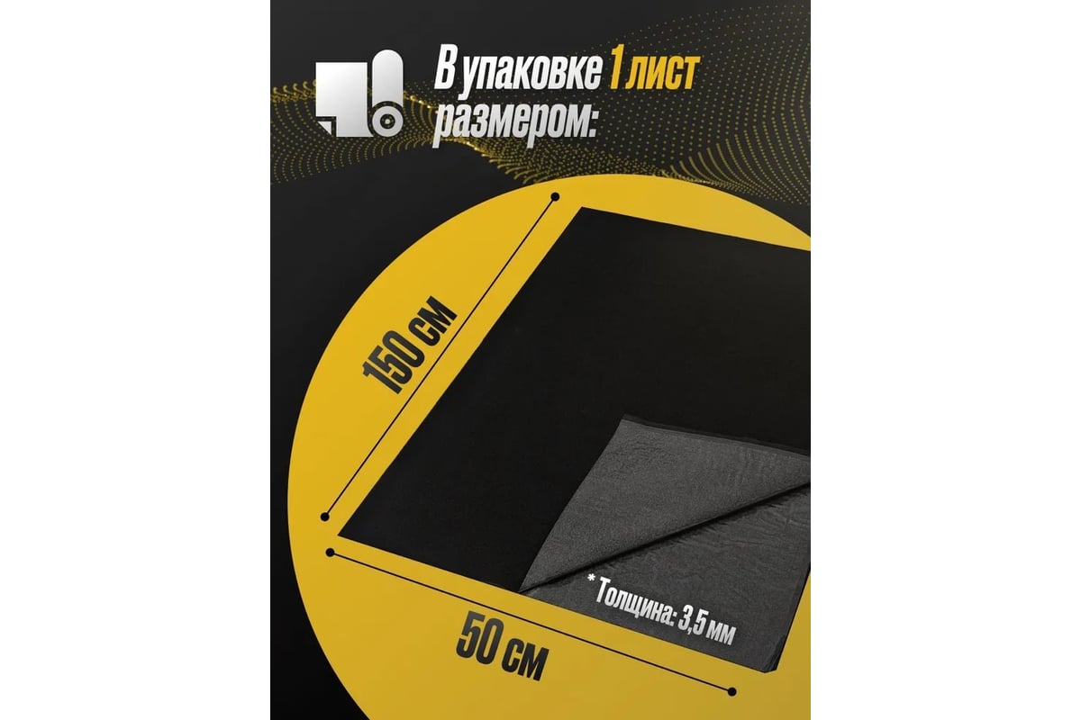 Акустический самоклеящийся карпет SGM черный 1 лист (1,5x0,5 м / 3,5 мм) SGM.K.BLK.KS.150X50.1Black