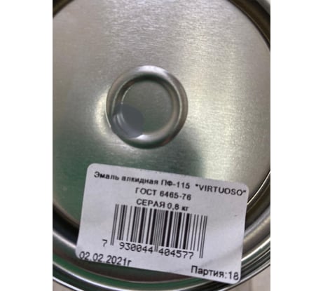 Алкидная эмаль VIRTUOSO ПФ-115 серая 1,7кг 11599124