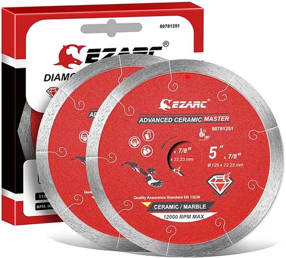 Алмазные отрезные диски EZARC диаметром 125 мм обеспечивают надежную работу с керамогранитом и мрамором.