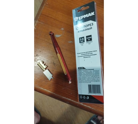 Стекло толщиной более 4 мм надо резать другим стеклорезом так в этом очень маленький искусственный алмаз и при более толстом стекле и алмаз вылетит и ручка не выдержит.
