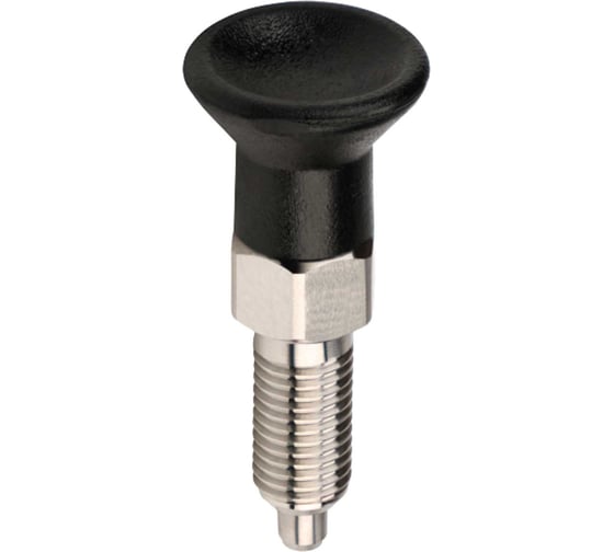 Штифты стопорные резьбовые с ручкой из пластика особенно хорошо подходят для тренажёров, промышленного оборудования и регулируемых механизмов. Конструкция штифта с пазом позволяет удерживать его в выведенном положении, что удобно при длительном выводе из зацепления и последующей ручной фиксации в нужной позиции. Без паза и стопорной гайки.
