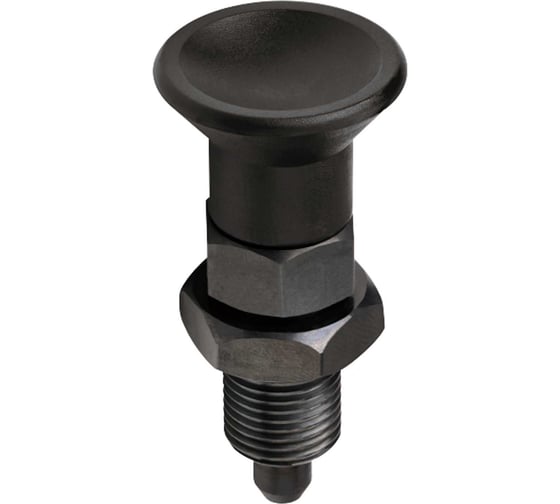 Штифты стопорные резьбовые с ручкой из пластика особенно хорошо подходят для тренажёров, промышленного оборудования и регулируемых механизмов. Конструкция штифта с пазом позволяет удерживать его в выведенном положении, что удобно при длительном выводе из зацепления и последующей ручной фиксации в нужной позиции. Со стопорной гайкой, без паза.