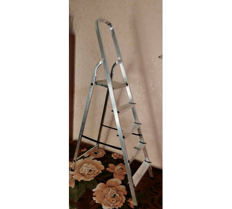 Опасно для жизни! Купили в офис для обклейки потолка шумопоглощающими плитами. Лестница рассчитана на 150 кг, мой вес - 80. Она под моим весом шатается из стороны в сторону, жесткости нет. Металл тонкий, конструкция хлипкая. Работать на такой высоте просто страшно.