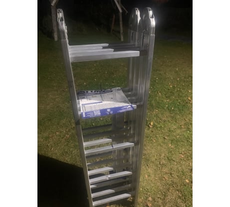 Лестница алюминиевая шарнирная четырехсекционная– представляет собой лестницу-трансформер, состоящую из четырех секций, последовательно соединенных между собой стальными шарнирами. Шарнины имеют три угла фиксации, которые обеспечивают лестнице три положения: -приставная, -стремянка, -приставная под крышу.