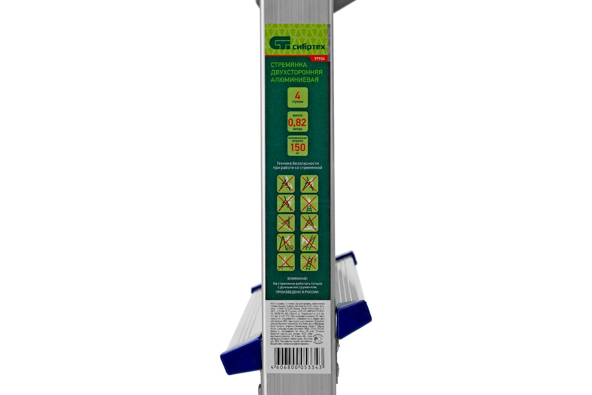 Алюминиевая двусторонняя стремянка СИБРТЕХ 4 ступени 97924