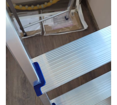 Тетивы и ступени стремянки изготовлены из высокопрочного алюминиевого сплава (ГОСТ 22233-2018), что обеспечивает прочность и долговечность при минимальном весе.