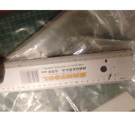 Разметка и цифры нарисованы на металле, причем не очень прочно. Там где чаще всего линейку трогаю, все цифры стёрлись, это очень не удобно. Также, края с обратной стороны немного углублены по сравнению со всем полотном, а мне как раз надо чтобы края прижимались к материалу. В общем, не очень удачная лично для меня покупка.