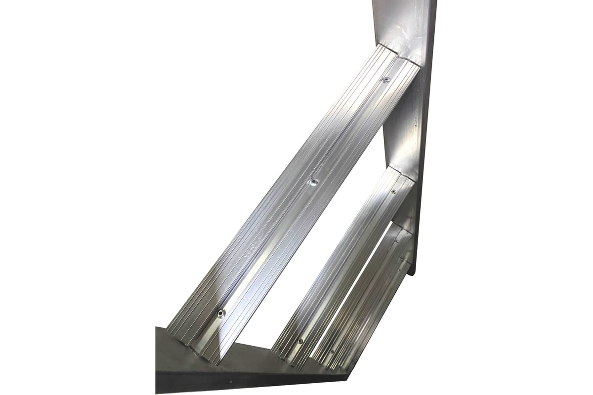 Ступени выполнены с рифлением,что способствует безопасному подъёму и спуску. На концах секций, с обеих сторон, установлены обрезиненные заглушки.