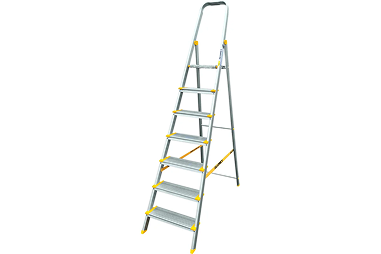Стремянка алюминиевая с анодированным покрытием профессиональная c широкими ступенями - представляет собой свободностоящую переносную лестницу, сужающуюся к верху, имеющую одну сторону для подъема, и оборудованную дугой безопасности, конструктивно выполненной совместно со стороной подъема.