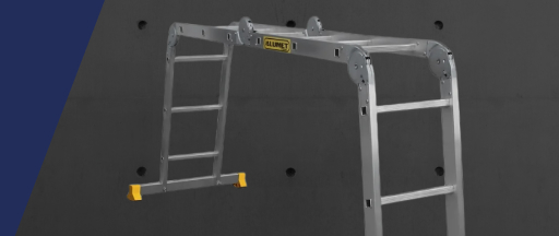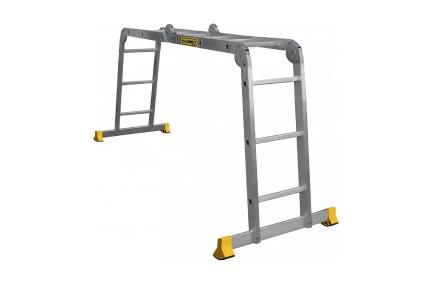 Лестница шарнирная алюминиевая четырехсекционная профессиональная– представляет собой лестницу-трансформер, состоящую из четырех секций,последовательно соединенных между собой стальными шарнирами. Шарнины имеют три угла фиксации,которые обеспечивают лестнице положения: -приставная, -стремянка, -приставная под крышу, -помост только для Т433, Т444(исключительно с штатной площадкой.В комплект не входит).