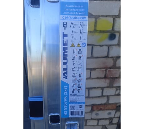 Лестница алюминиевая трехсекционная универсальная c органайзером–замечательный выбор для проведения работ на высоте.