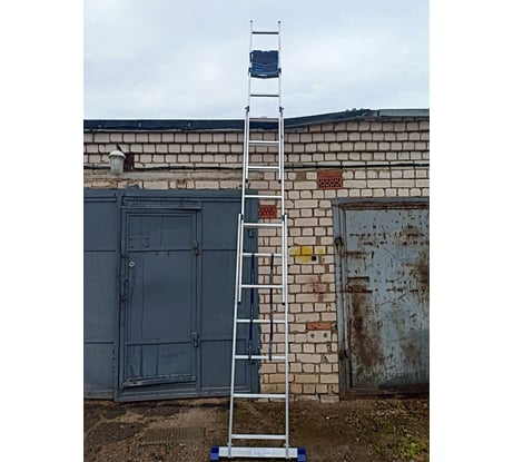 Шикарная лестница. Можно использовать по разному: можно полностью собрать и залезть на крышу, можно использовать часть как небольшую приставную лестницу, можно использовать как стремянку. Сделана из алюминия, поэтому довольно лёгкая, но на удивление прочная. И коррозии не подвержена, можно и хранить, и использовать в разных условиях. Довольно компактная в собранном виде - удобно хранить и транспортировать. Лазить по ней не страшно - даже под амбалом 100кг веса, лестница лишь слегка прогибается, никаких намёков, на то, чтобы сломаться и близко нет. Довольно устойчивая, благодаря стабилизатору, чтобы её свалить - это нужно специально стараться. Возможно, для здорового мужика, ступени могут показаться узковаты, но это проблема абсолютно всех лестниц. Имеется матерчатый органайзер, правда скорее как бонус, но может и понадобится кому-то. В общем, для дачно-гаражного использования вариант отличный. Для ежедневной работы под нагрузкой могут быть вопросы, всё таки профиль алюминиевый и не самый толстый.