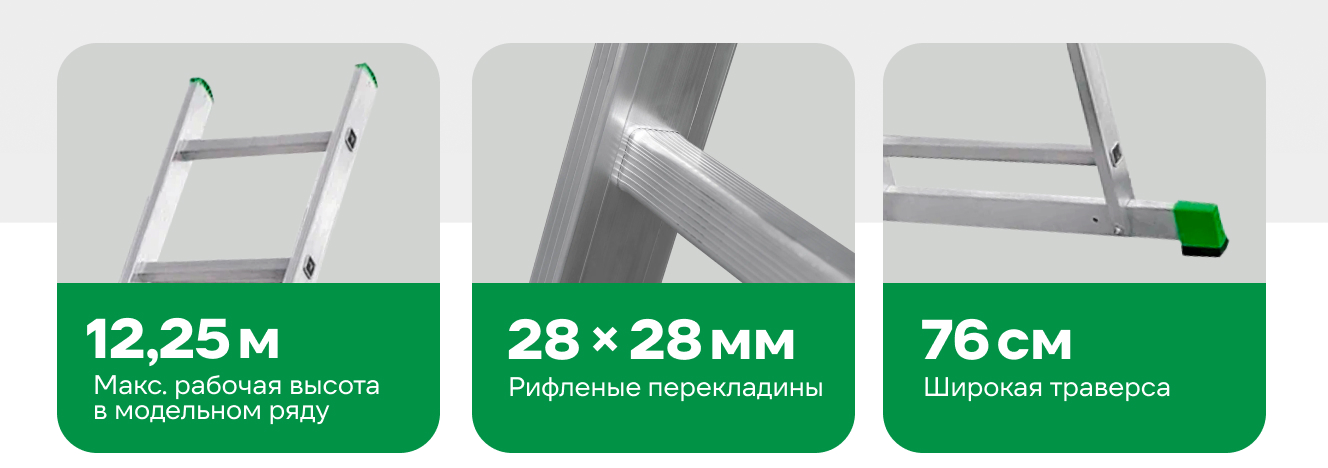 Алюминиевая трёхсекционная профессиональная лестница Новая Высота Проф 3x17 перекладин 604317