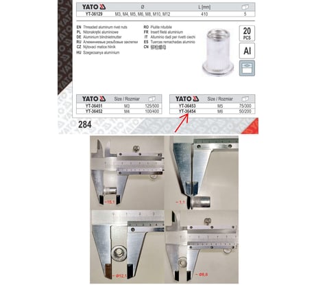 Отзывы об алюминиевых резьбовых заклепках YATO М6 20 шт. YT-36454