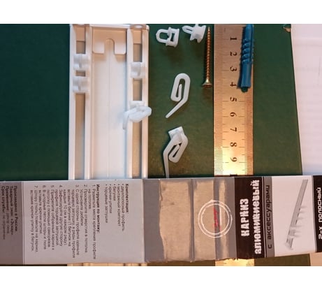 Обычный алюминевый карниз.Качество отличное,покрашен равномерно.Крючки и бегунки, также саморезы с дюбелем присутвуют.Отверстий нет,надо самому расверливать.Единственное на,что возникл вопрос:зачем два отверстия по краям карниза? Кстати,бегунки легко ходят по профилю, нигде не застревают.А сами крючки в форме улитки.Ими легко надевать шторы(тюль) на бегунки карниза.Т.е. длиный,выступающий кончик крючка просовываешь через петельку шторы(тюль) снизу вверх и одновременно просовываешь в ушко бегунка.Довольно легко одевается.Читал в отзывах,что врагу не пожелаешь, одевать крючки на шторы,нет,там все просто.