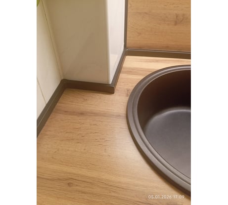 Указано, что плинтус можно установить любой стороной-широкой и узкой. Но комплект заглушек подходит только установки широкой стороной к стене. Придется искать заглушки отдельно, чтобы соединить плинтус в углах. Для установки плинтуса широкой стороной к столешнице они не подходят.