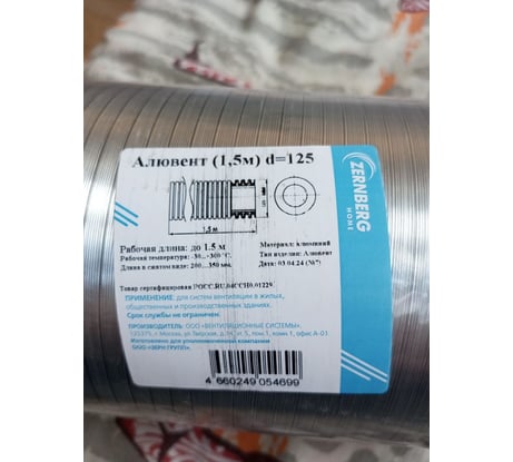 Отзывы об алювенте 1,5м., d=125 Zernberg 10205921