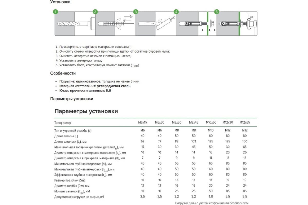 Технические характеристики анкерной гильзы Партнер со шпилькой