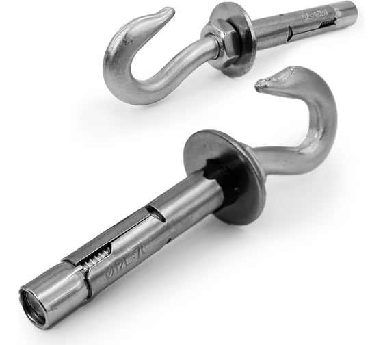 Анкерный болт с крюком Назначение Анкерный болт с крюком — это усиленный крепёжный элемент, предназначенный для монтажа подвесных конструкций к полнотелым основаниям (бетон, полнотелый кирпич, природный камень).