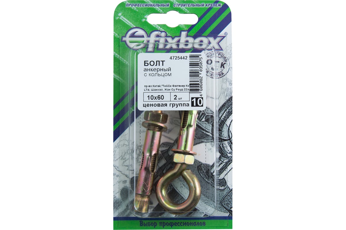 Вопросы и ответы об оцинкованном анкерном болте Fixbox 10x60 2 шт. с кольцом 139390