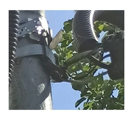 Легко закрепляется как на стене саморезами, так и на столбе с помощью ленты. Держит СИП 16Х2 10 м.