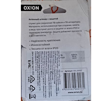 Штекер телевизионный OXION служит для монтажа и подключения цифрового DVBT, спутникового, кабельного и прочего оборудования с помощью коаксиального кабеля.