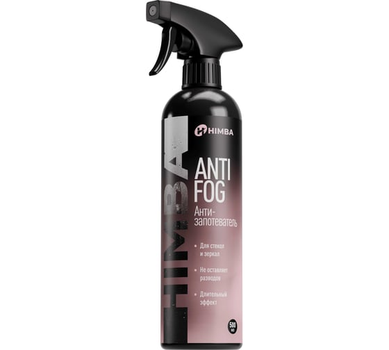 Специальный состав HIMBA предотвращает запотевание стёкол автомобиля на длительное время, обеспечивая чёткую видимость и повышая безопасность движения в условиях повышенной влажности. Благодаря образуемой прочной полимерной плёнке поверхность устойчиво противостоит образованию конденсата. Состав не влияет на оптические свойства стекла, исключает искажения и не оставляет разводов. Подходит также для обработки зеркал в ванных комнатах, очков и других стеклянных поверхностей.