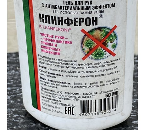 Отзывы об антибактериальном геле для рук Cleanferon 50 мл 12221