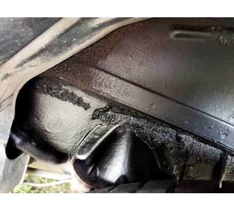Отслаивается, не защищает. Эффект как от просто серной краски. Езжу в основном по асфальту, если бы по грунтовкам ездил, раньше бы наверное отпало.