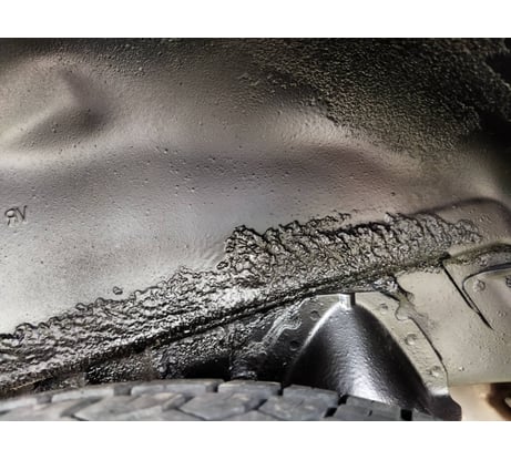 Одного баллона хватило на две задние арки. Наносится как краска тонким слоем. Сомнительно, что даже несколько слоев спасут от гравия.