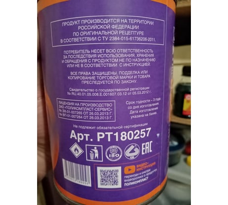 Технические характеристики антикоррозийного покрытия ПолиКомПласт Мовиль РТ180257